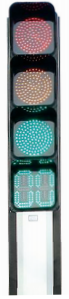 ◎红、黄、绿三色分屏显示,最下灯盘为红绿双色倒计时器,灯壳与杆体一体连接,表面做喷塑处理。