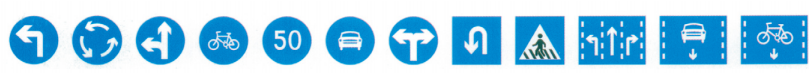 指示标志是指示车辆、行人行为的标志,其形状为圆形、正方形、长方形、其颜色为蓝底、白图案。尺寸常用的有:圆形(直径)60CM、80CM、100CM、120CM,正方形(边长)60CM、80CM、100CM、120CM,长方形(边长)60X30CM、80X40CM、100X50CM、120X60CM等。