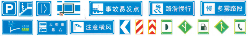 指路标志是传递道路方向、地点、距离信息的标志。其形状为长方形、正方形,其颜色及图案除个别标志外,一般道路为蓝底、白图案,高速公路为绿底、白图案。